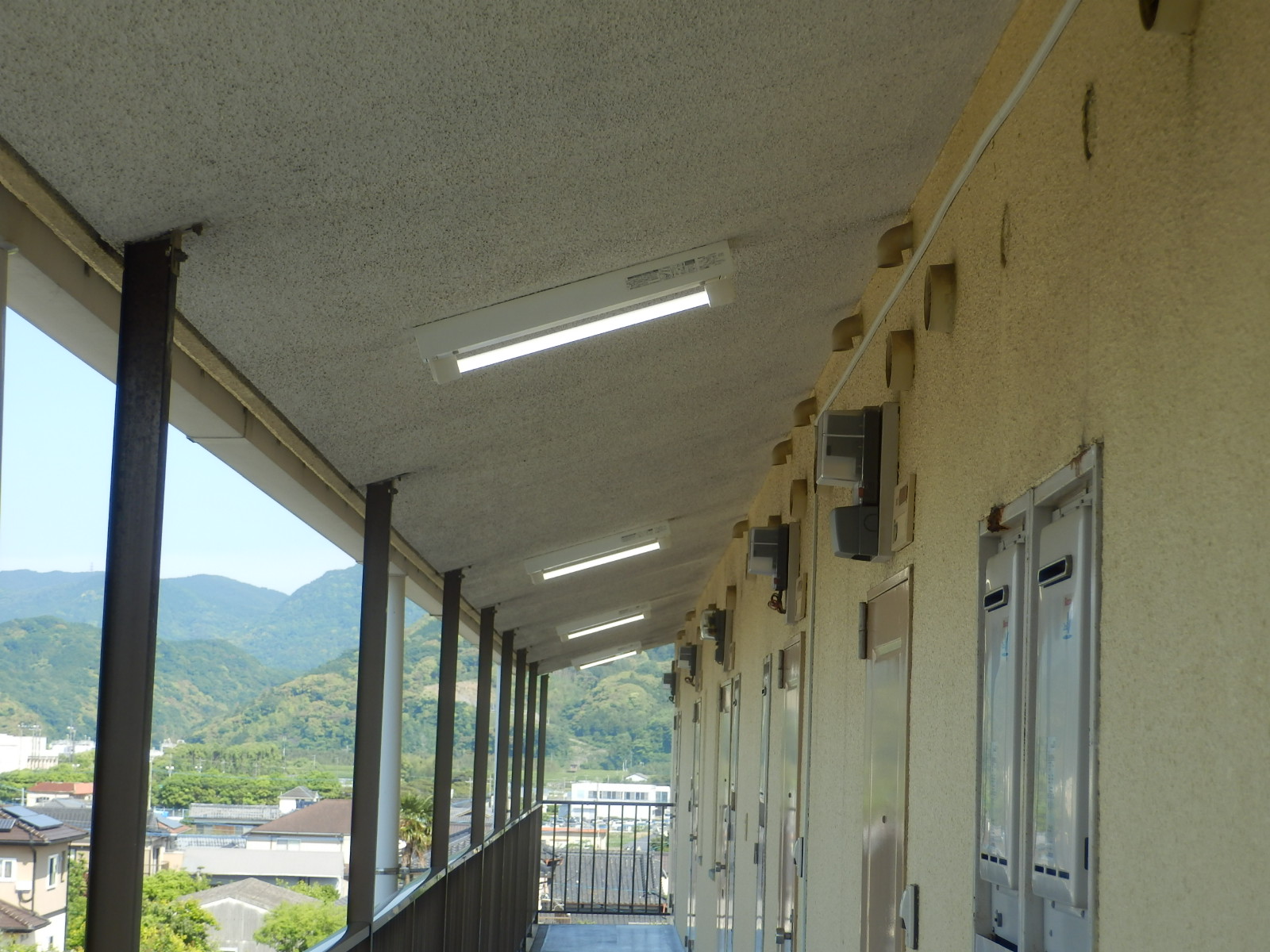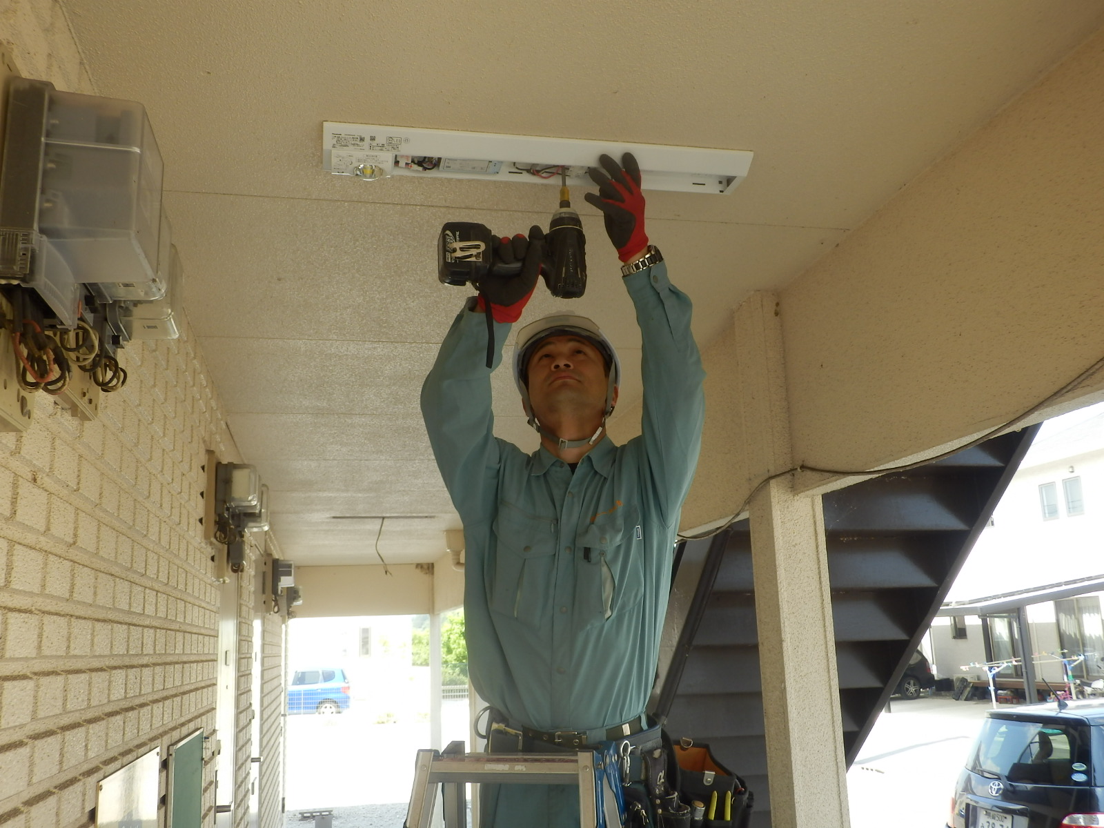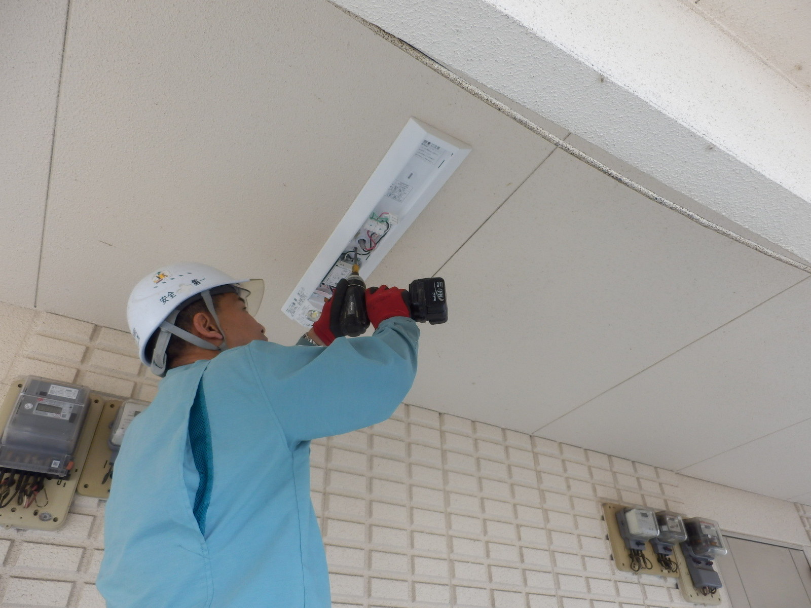 大分市内アパートでのLED交換工事が引き続き2棟、完工しました。