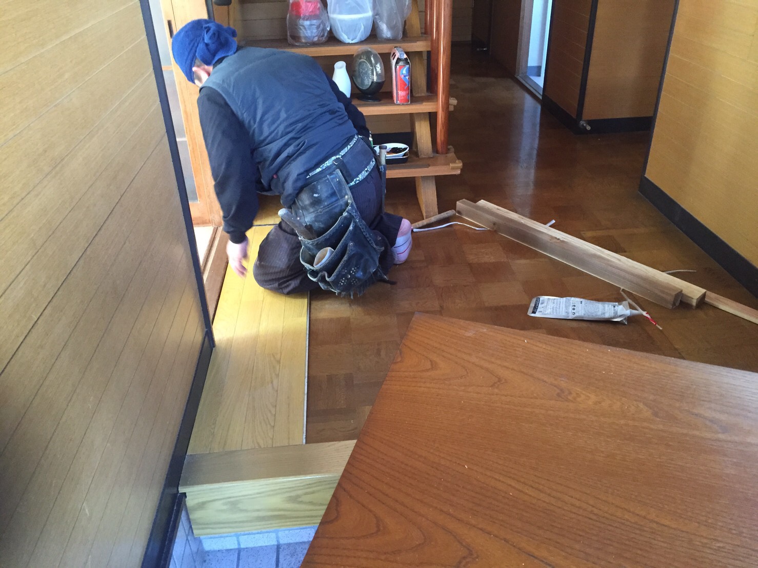 ねぎらいの気持ちということで、お家のフローリングのリフォームもご依頼いただきました。
