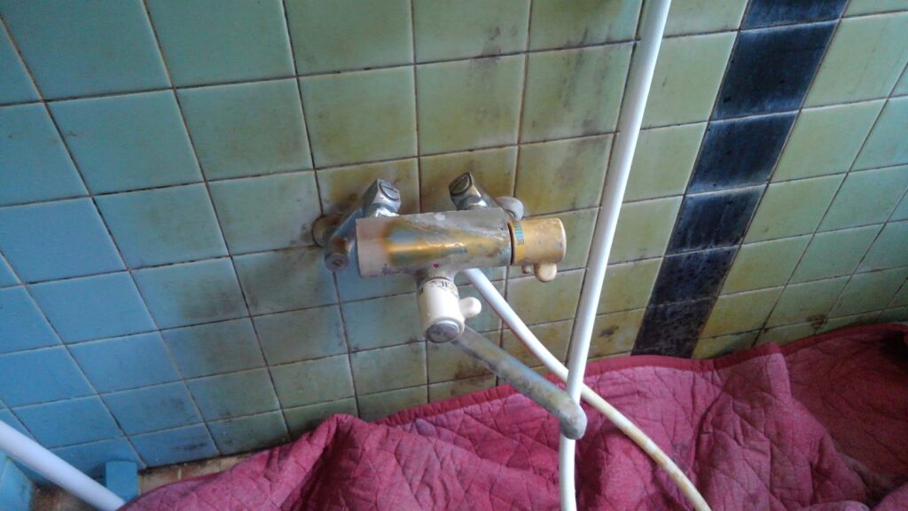 配管から水漏れをしている、との事でしたので配管改修をし、 同時に、シャワー水栓の交換依頼がありましたので取替え工事をしました(^^)